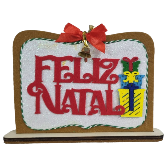 ENFEITE PLACA FELIZ NATAL FELTRO 28X13CM