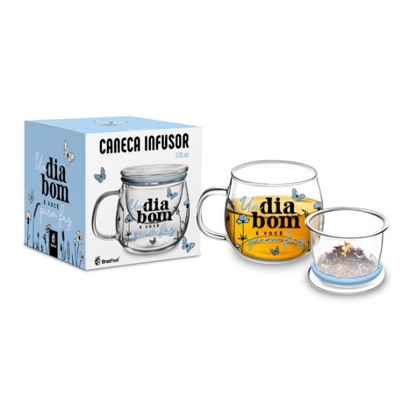 CANECA VIDRO INFUSOR 315ML UM BOM DIA