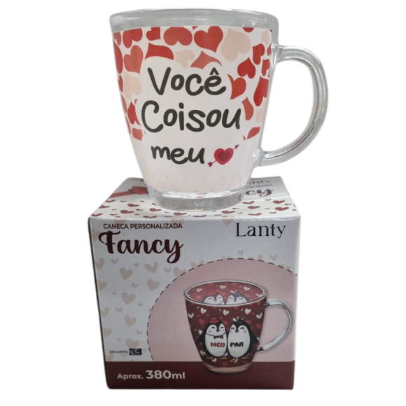 CANECA VIDRO 380ML MEU PAR PINGUIM