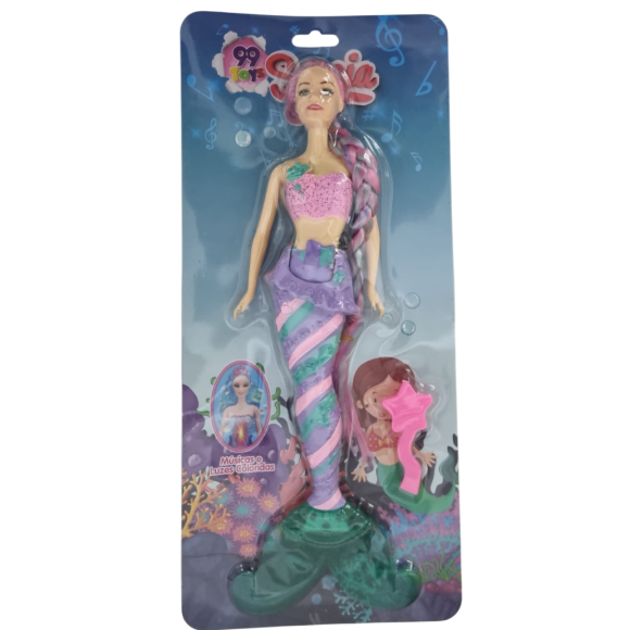 BONECA LUZ 34CM SEREIA COM ACESSÓRIOS