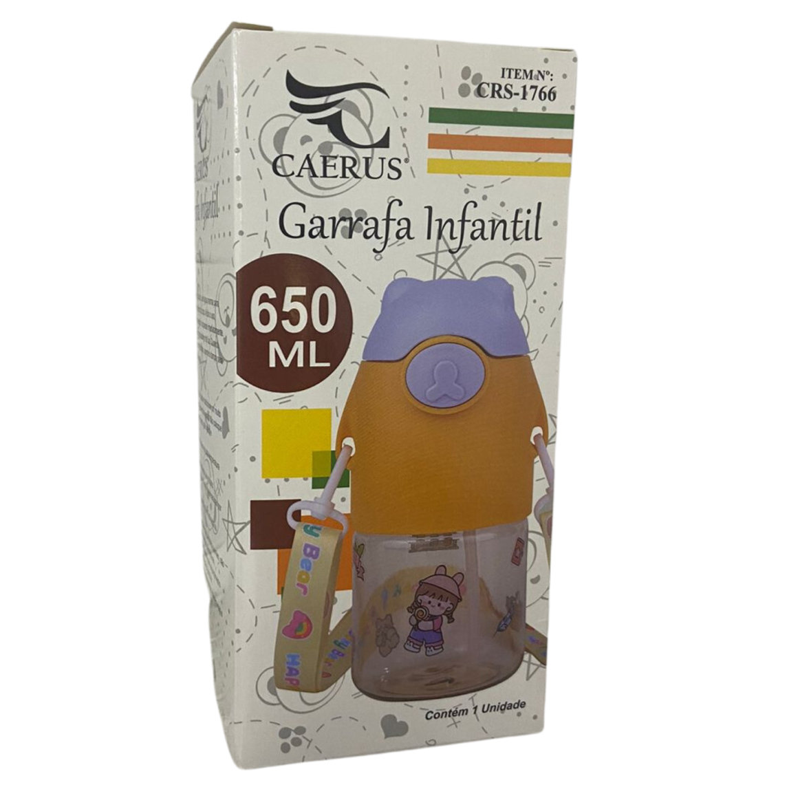 SQUEEZE INFANTIL PLÁSTICA 650ML ALÇA + ADESIVO