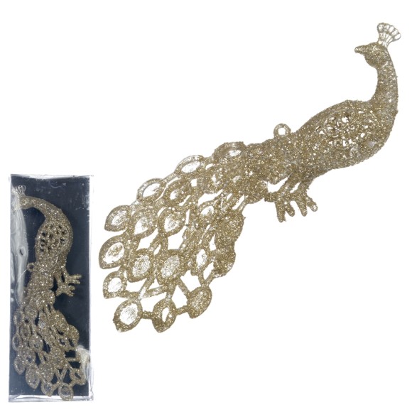 ENFEITE PAVÃO GLITTER 20CM CHAMPANHE