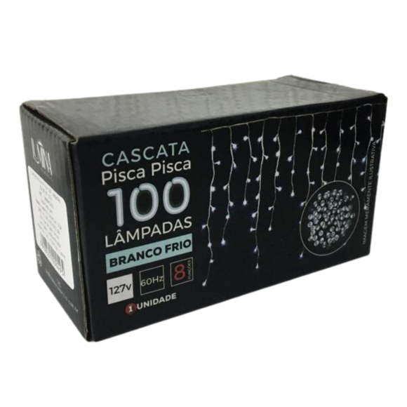 PISCA CASCATA 100 LEDS FT 8 FUNÇÕES BRANCO