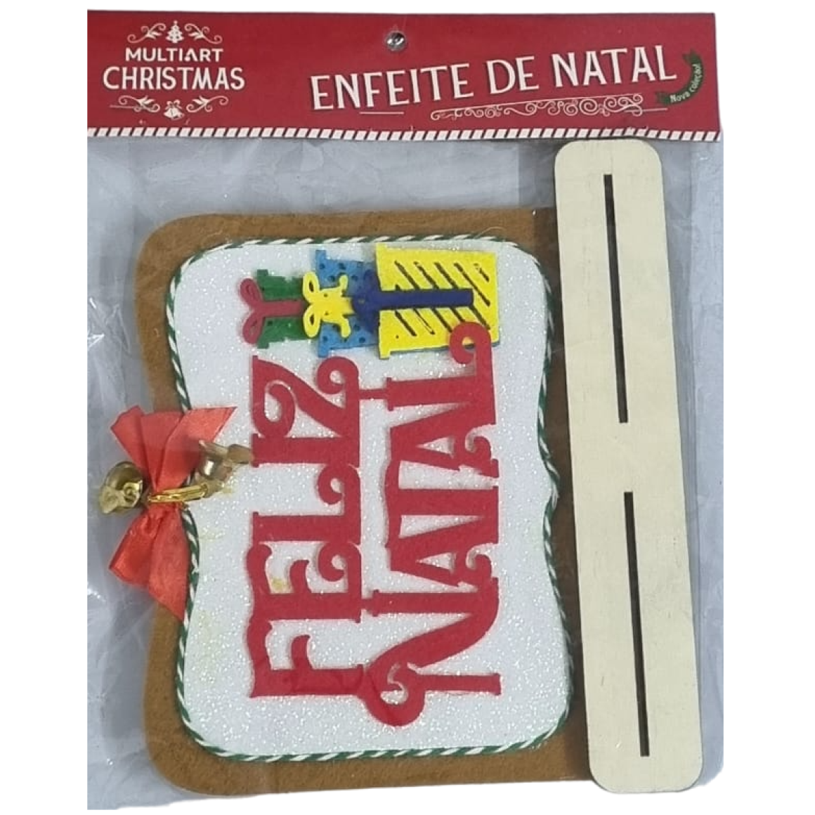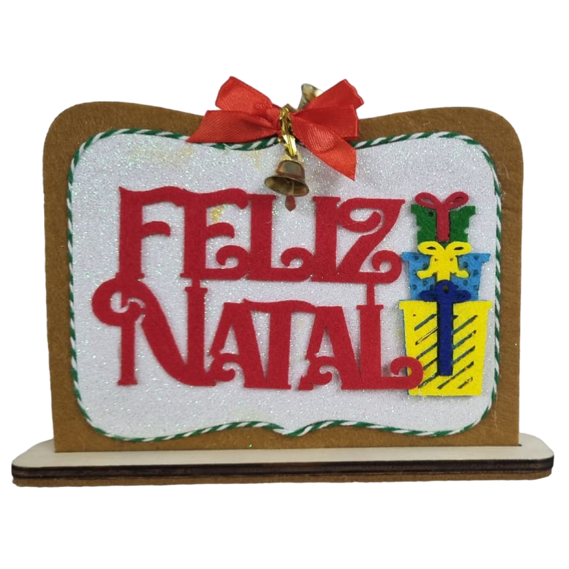 ENFEITE PLACA FELIZ NATAL FELTRO 28X13CM