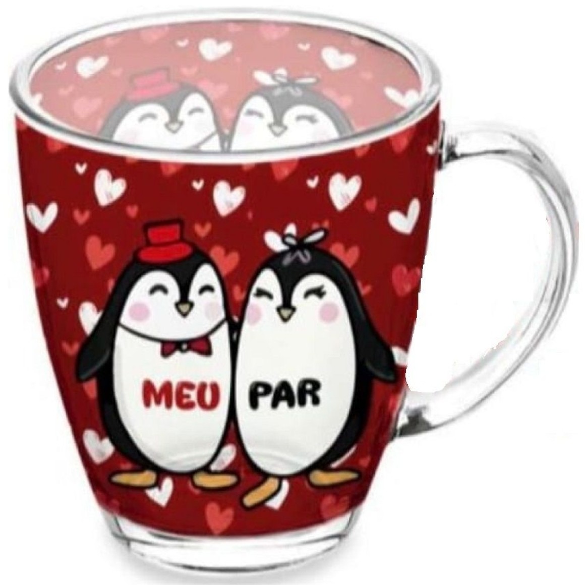 CANECA VIDRO 380ML MEU PAR PINGUIM