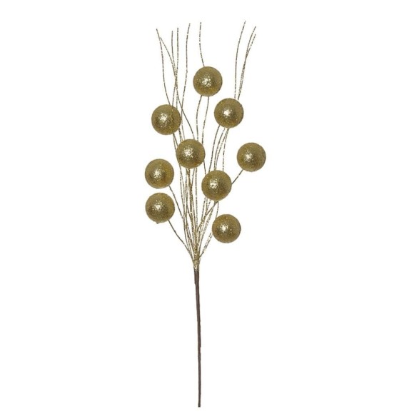 ENFEITE GALHO GLITTER 45CM BOLA DOURADO