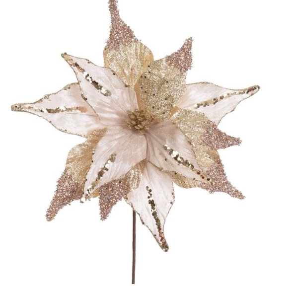 FLOR BICO DE PAPAGAIO VELUDO GLITTER 34CM CHAMPANHE