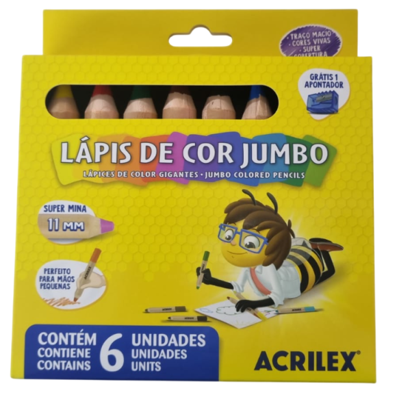 LÁPIS COR JUMBO 6 CORES C/ APONTADOR