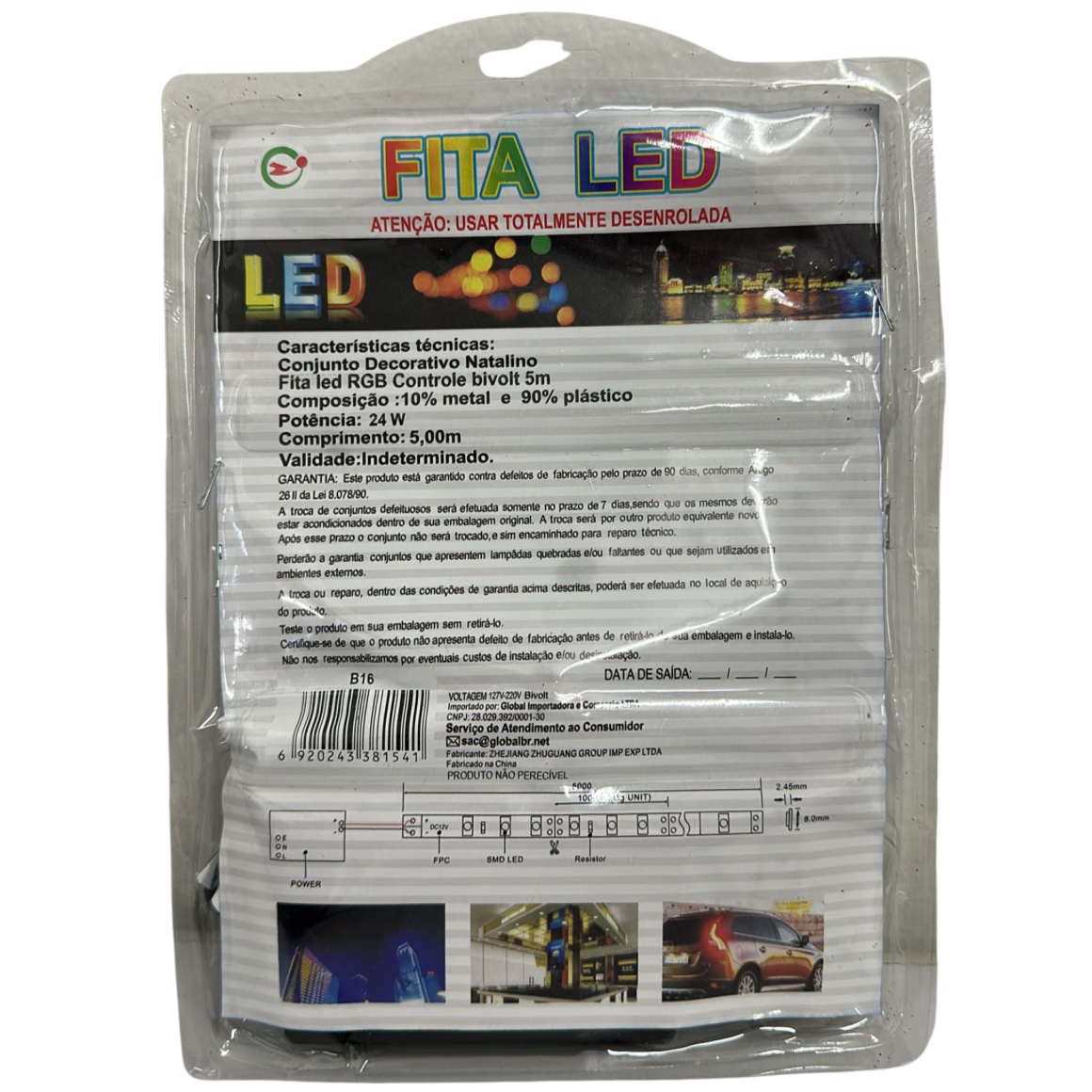 FITA LED 5M RGB 5050 CONTROLE