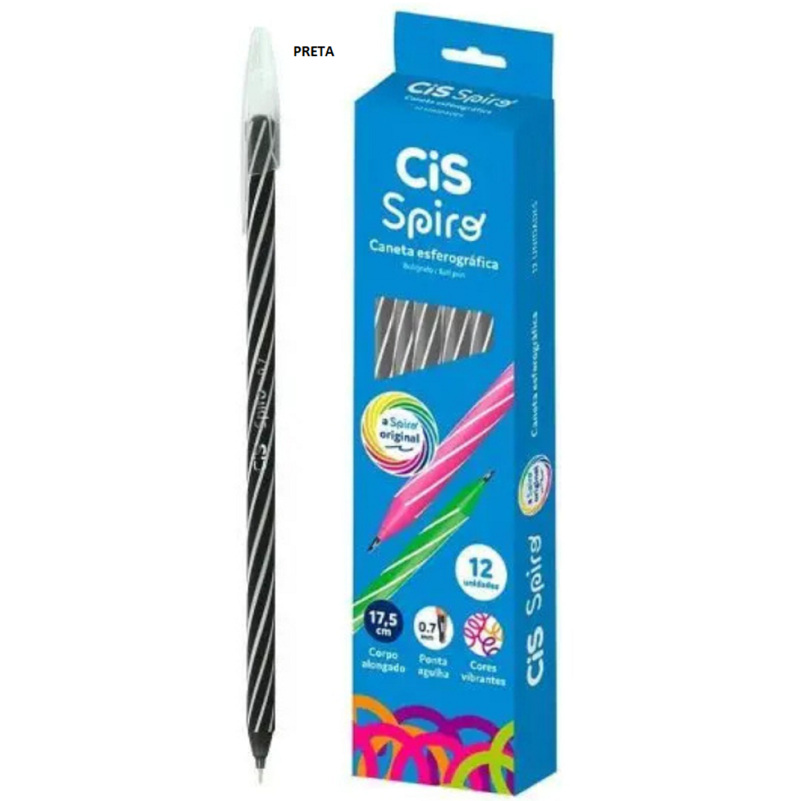 CANETA ESFER.SPIRO 0.7 C/12UN PRETA