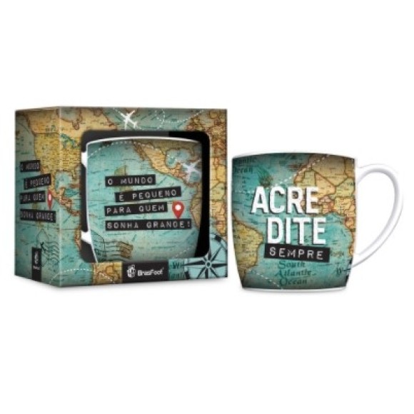 CANECA PORCELANA 300ML URBAN O MUNDO É PEQUENO